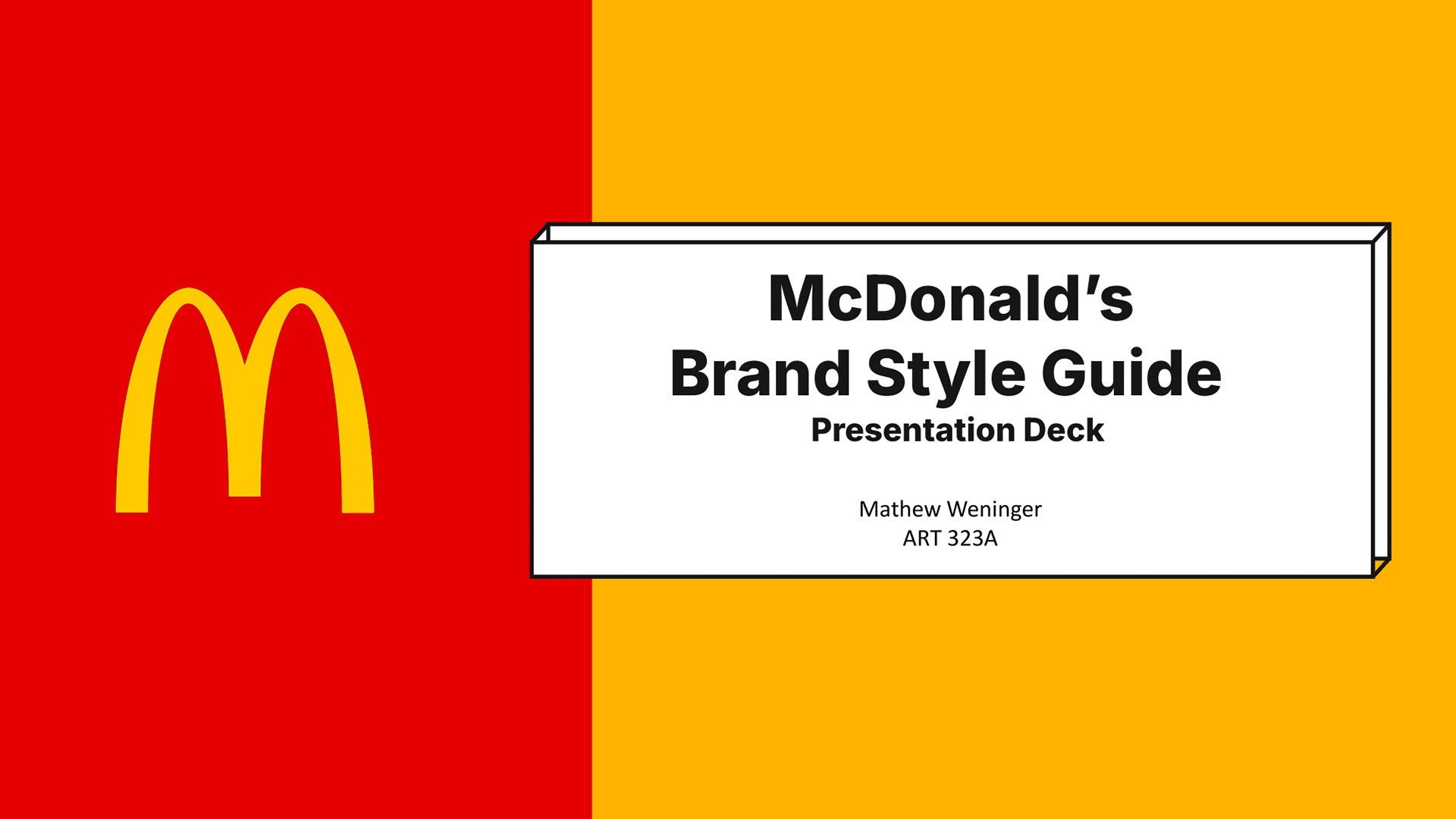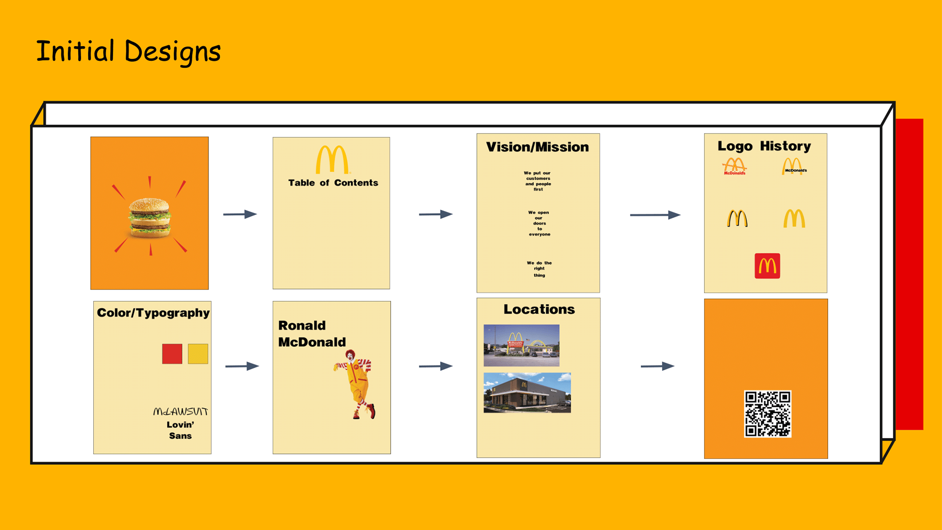 The goal of this project was to pick a company of our choice, and create a guide that described the look of the brand. I chose McDonalds because I was very intrigued with their identity. The difficulty with this project was the research and needing to find the right information to include.
